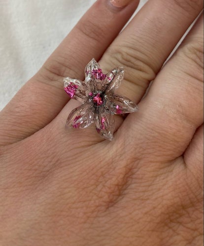 Bague en acier inoxydable et résine, en forme de fleur, réglable
