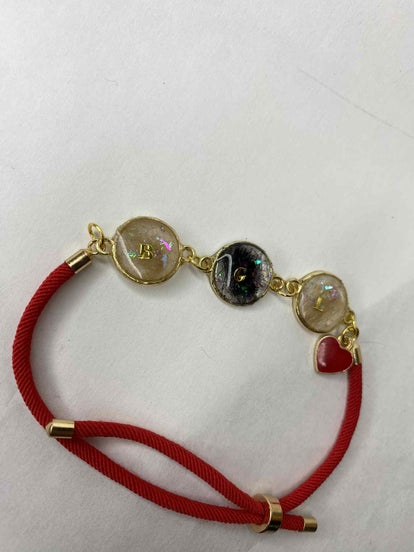 Bracelet avec cordon différentes couleur possible.Possibilité de mettre juste des initiales. Pour vos personnalisations n'hésitez pas à remplir le formulaire.
