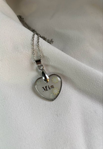 Collier avec chaine en acier inoxydable, le bijoux est fait main avec de la résine et du lait maternel + initiales, sur demande il est possible de le faire avec d'autres incrustations ou de les rajoutés , comme les cheveux.