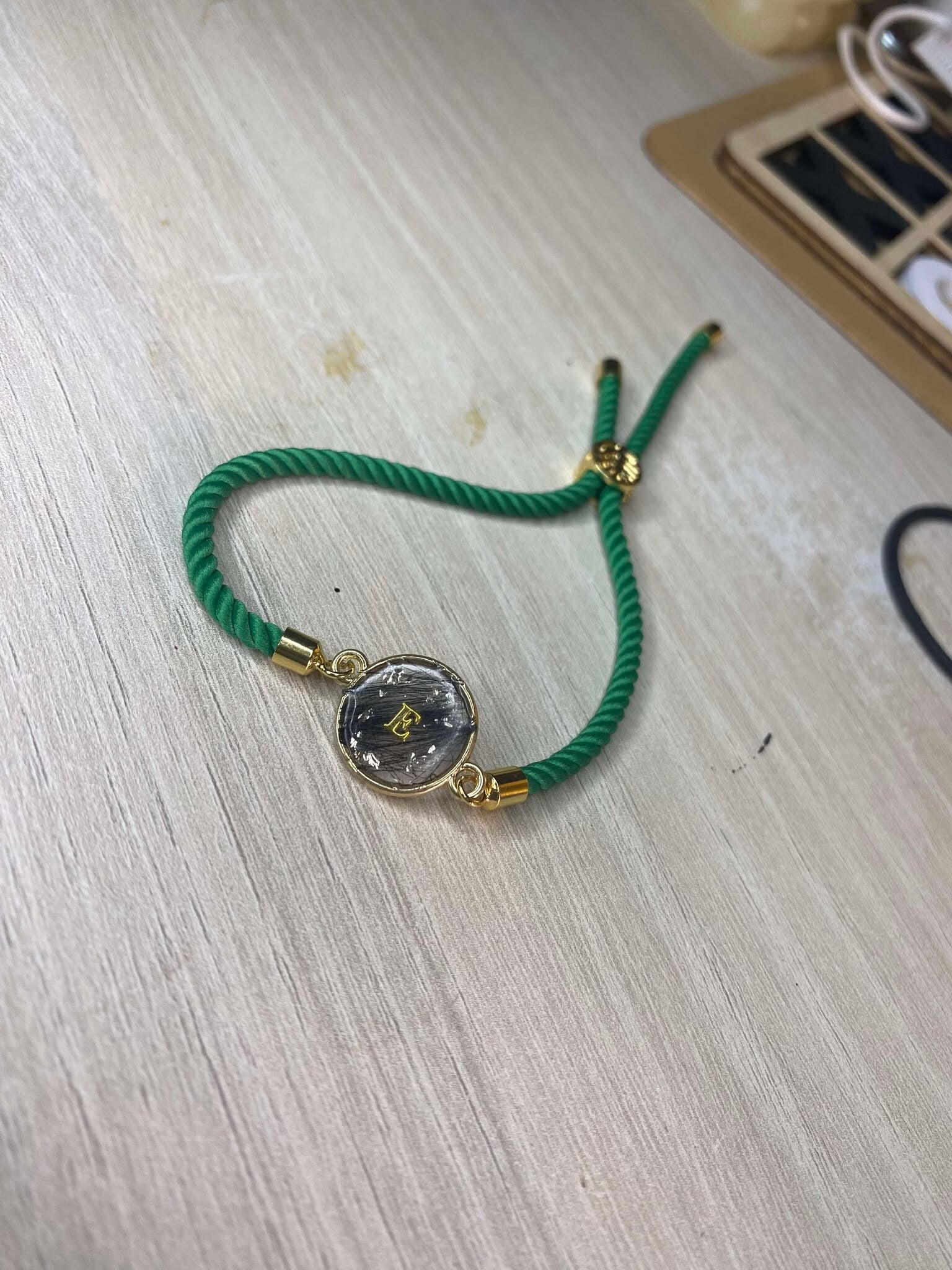 Bracelet avec cordon différentes couleur possible.Possibilité de mettre juste des initiales. Pour vos personnalisations n'hésitez pas à remplir le formulaire.