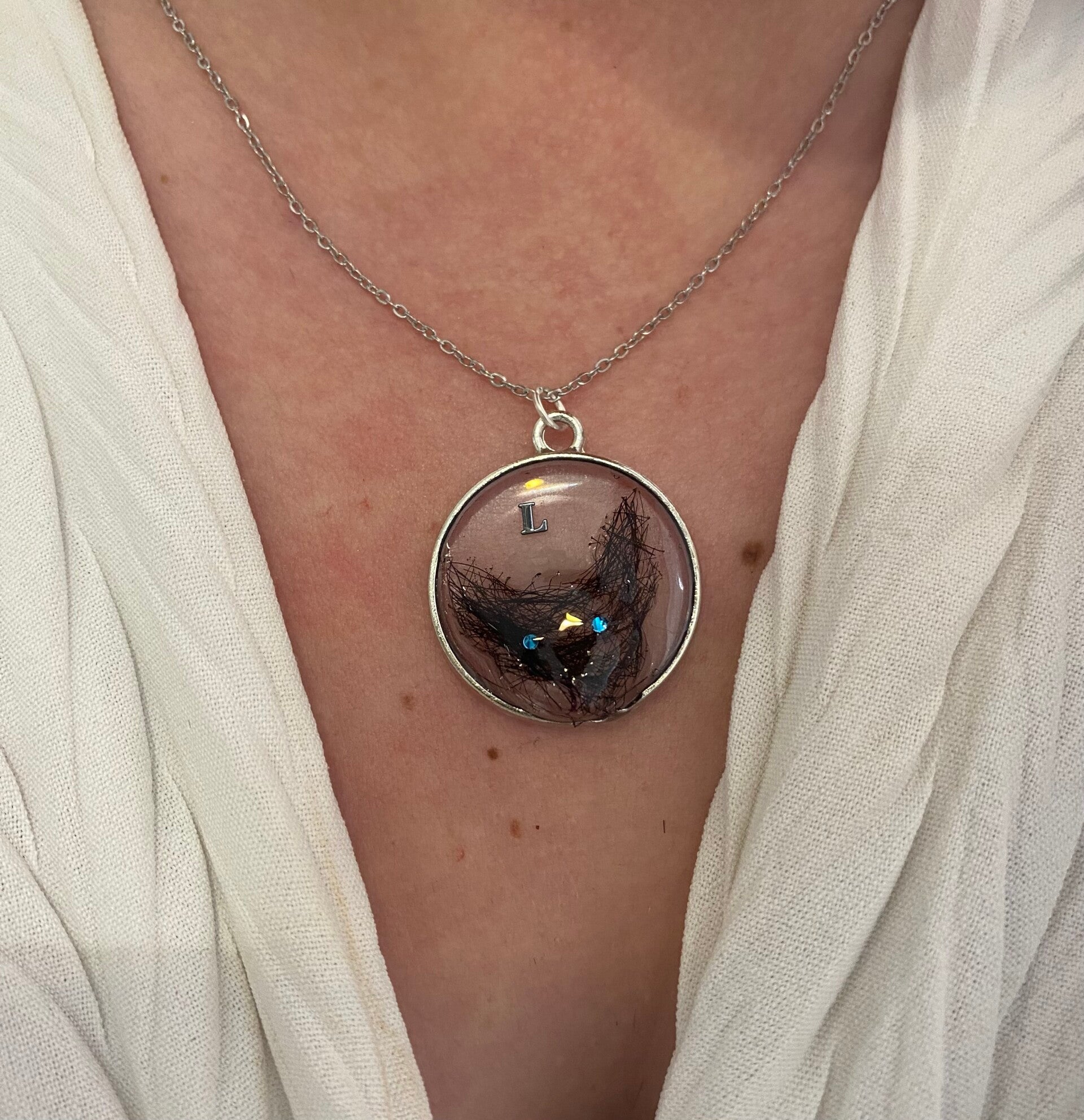 Collier tête de chien 3D, fait en résine.Chaine en acier inoxydable , possible de mettre une couleur différente pour les yeux. Avec initiale. Afin de réaliser au mieux votre projet je vous laisse noter tous vos détails dans le formulaire (incrustations,décos, initiales ..).