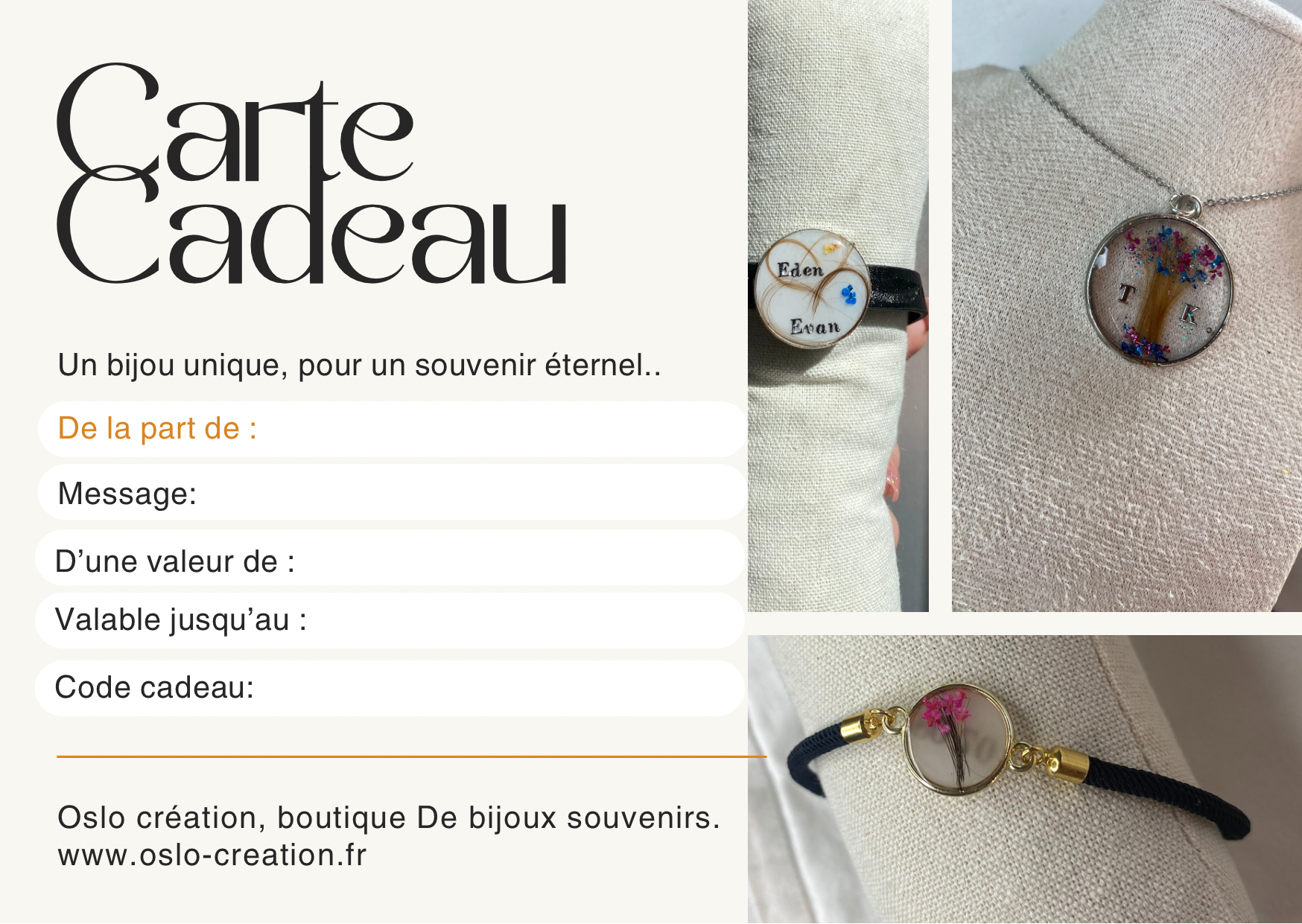 une fois la commande passée, vous recevrez la carte cadeau pré remplie avec le code cadeau qui servira à la personne pour passer commande. Vous pourrez l'imprimer depuis chez vous ou bien sur demande par mail je vous l'envoie en physique.