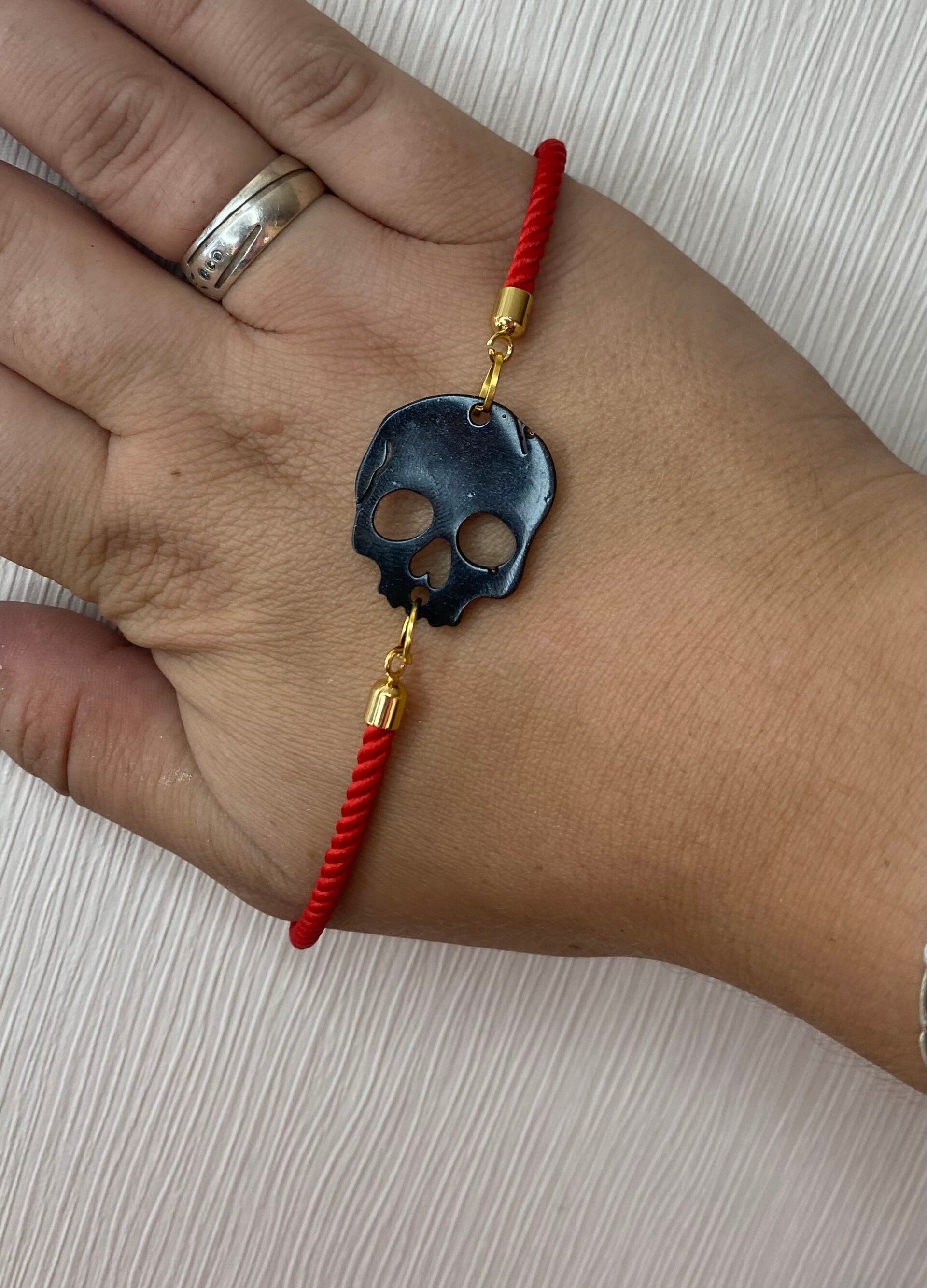 Bracelet cordon en tissu et résine, avec bijou en tête de mort